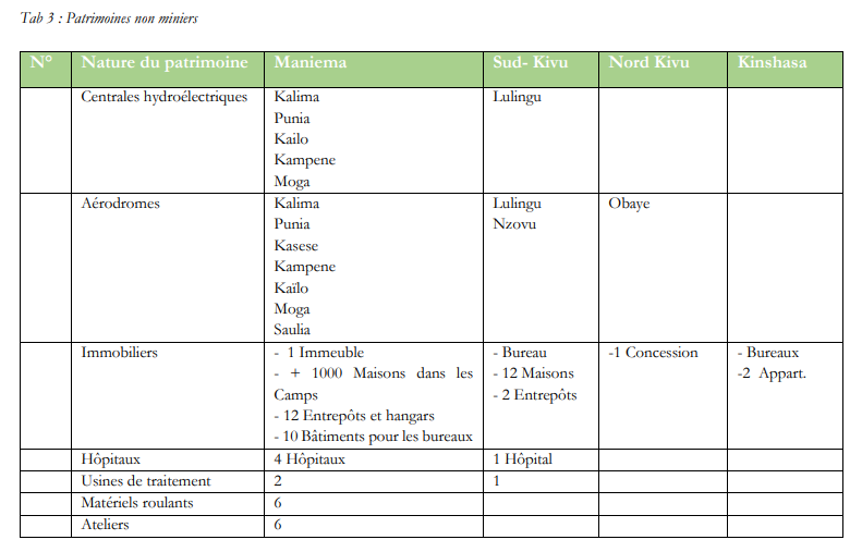 - La non validité des titres miniers suite à l’abrogation de la Convention minière qui dispensait la société du payement des droits supérficiaires et des impôts dus aux provinces et dont certains que le CAMI menace de retirer conformément aux dispositions du nouveau Code Minier ;